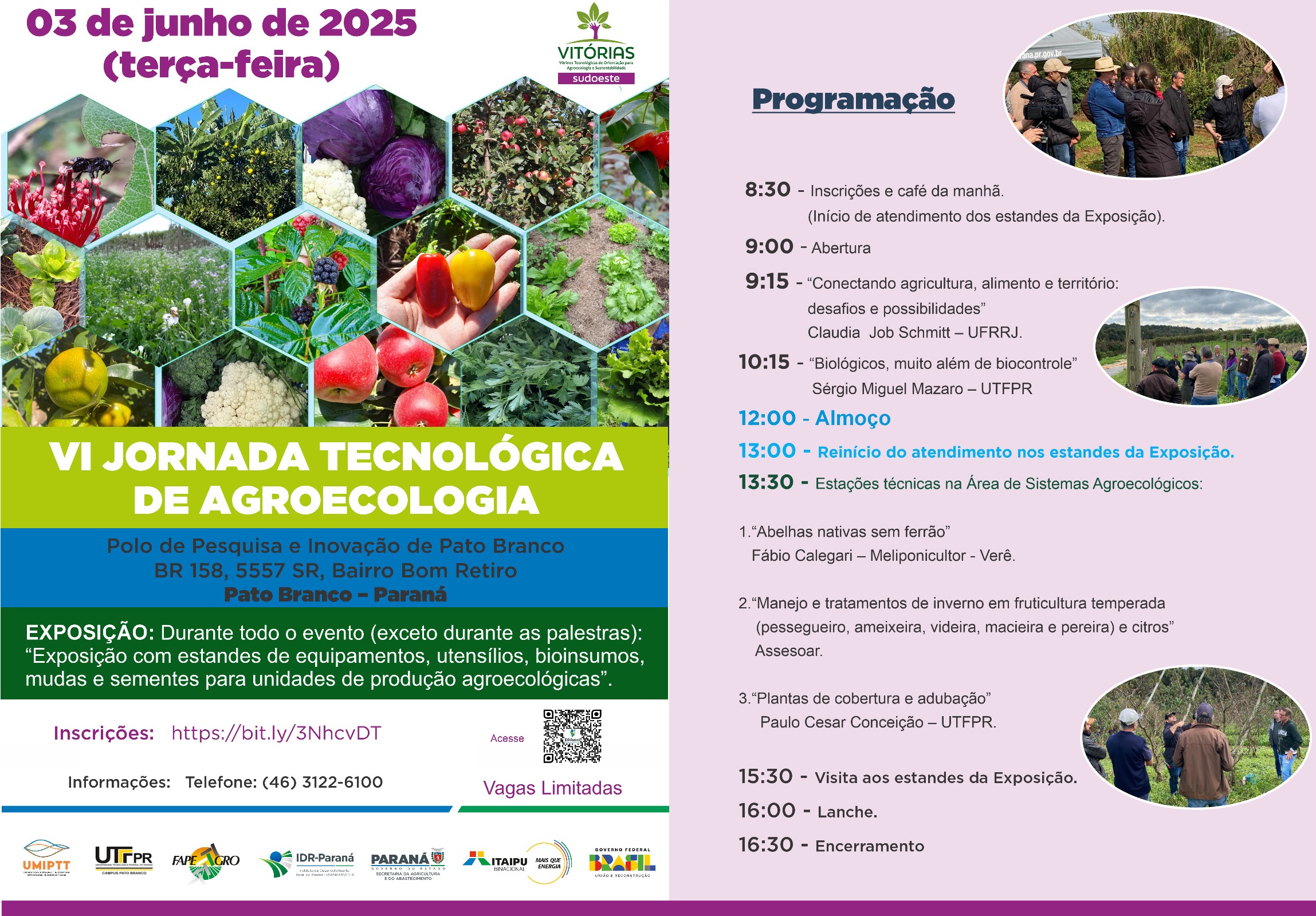 | III JORNADA TECNOLÓGICA AGROECOLOGIA- DIA DE CAMPO; Implantação pomares e agrofloresta - Pato Branco | de 17/11/2022 a 17/11/2022 Fechado Para Novas Inscricoes | |