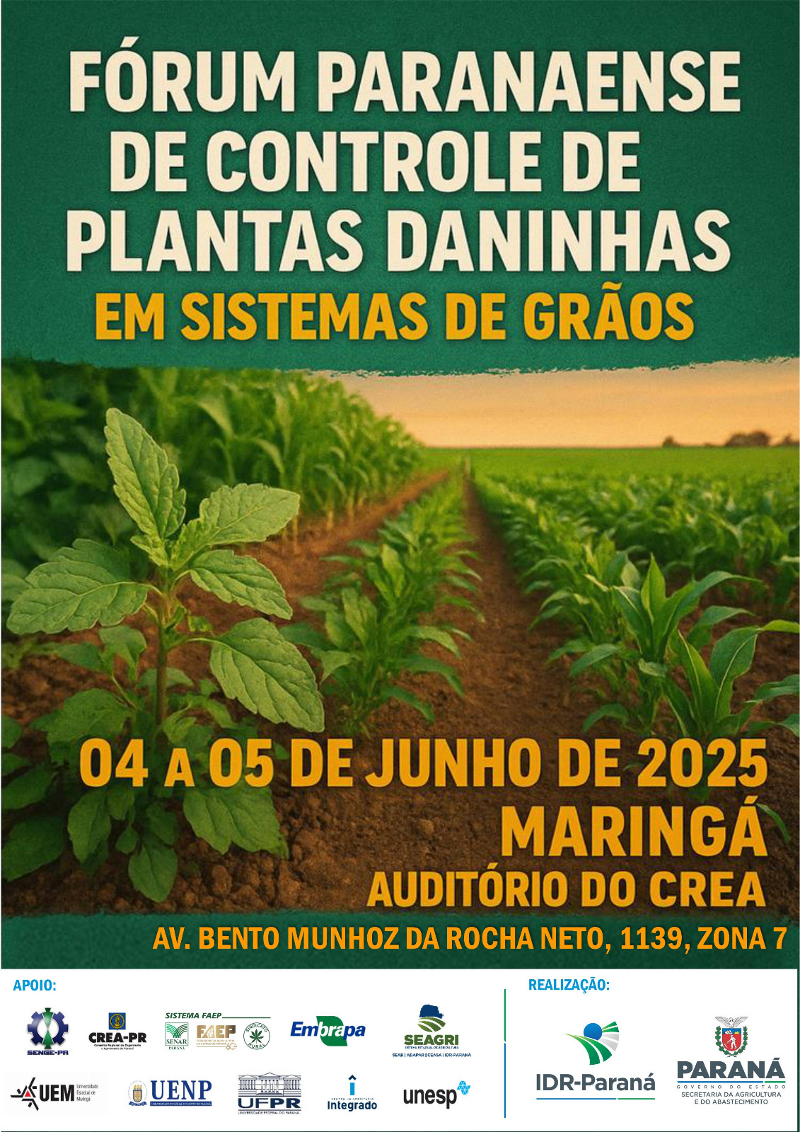 | FÓRUM PARANAENSE DE CONTROLE DE PLANTAS DANINHAS EM SISTEMAS DE GRÃOS | de 04/06/2025 a 05/06/2025 Fechado Para Novas Inscricoes | |