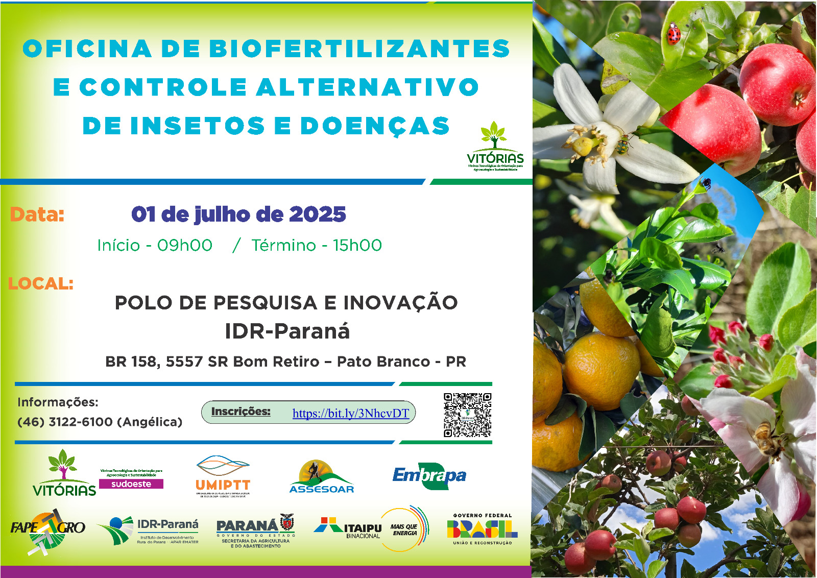 | OFICINA DE BIOFERTILIZANTES E CONTROLES ALTERNATIVOS DE INSETOS E DOENÇAS | de 01/07/2025 a 01/07/2025 Fechado Para Novas Inscricoes | |