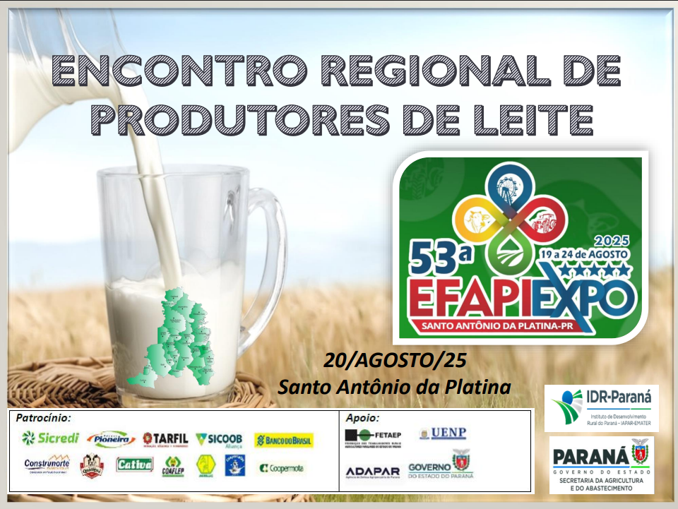 | ENCONTRO REGIONAL DE PRODUTORES DE LEITE | de 20/08/2025 a 20/08/2025 Fechado Para Novas Inscricoes | |
