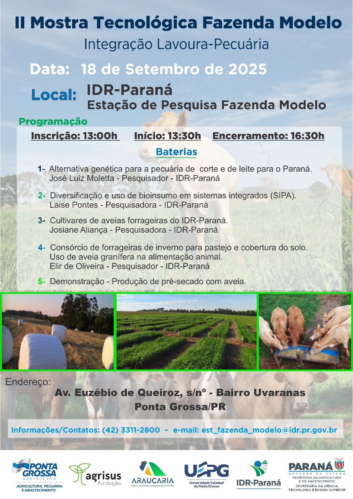 | II MOSTRA TECNOLÓGICA FAZENDA MODELO - Integração Lavoura-Pecuária | de 18/09/2025 a 18/09/2025 Fechado Para Novas Inscricoes | |