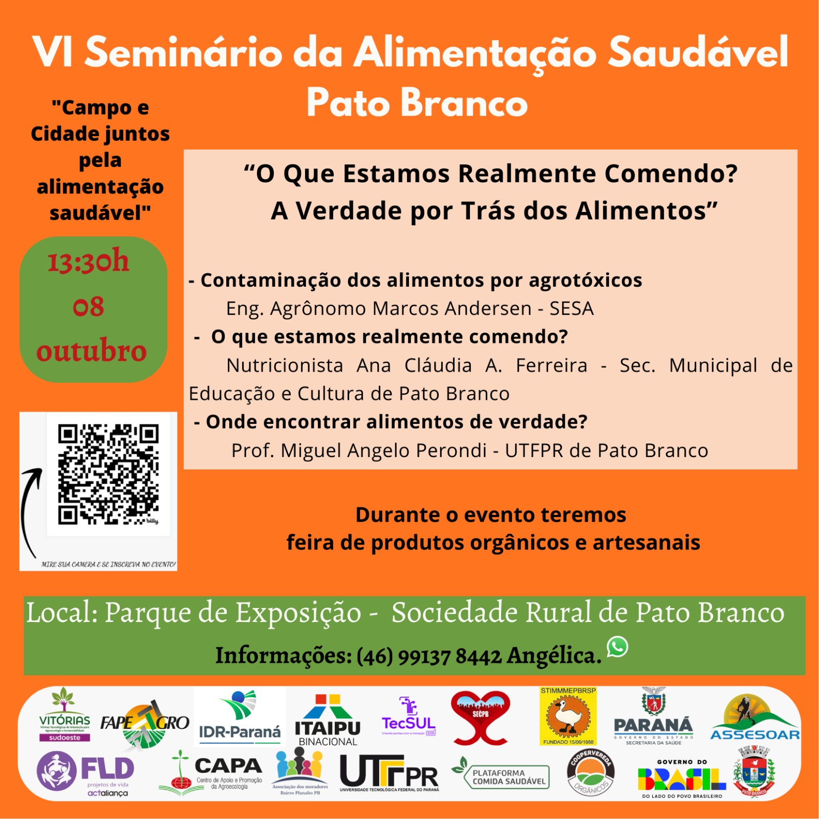 | VI Seminário da Alimentação Saudável Pato Branco | de 08/10/2025 a 08/10/2025 Fechado Para Novas Inscricoes | |