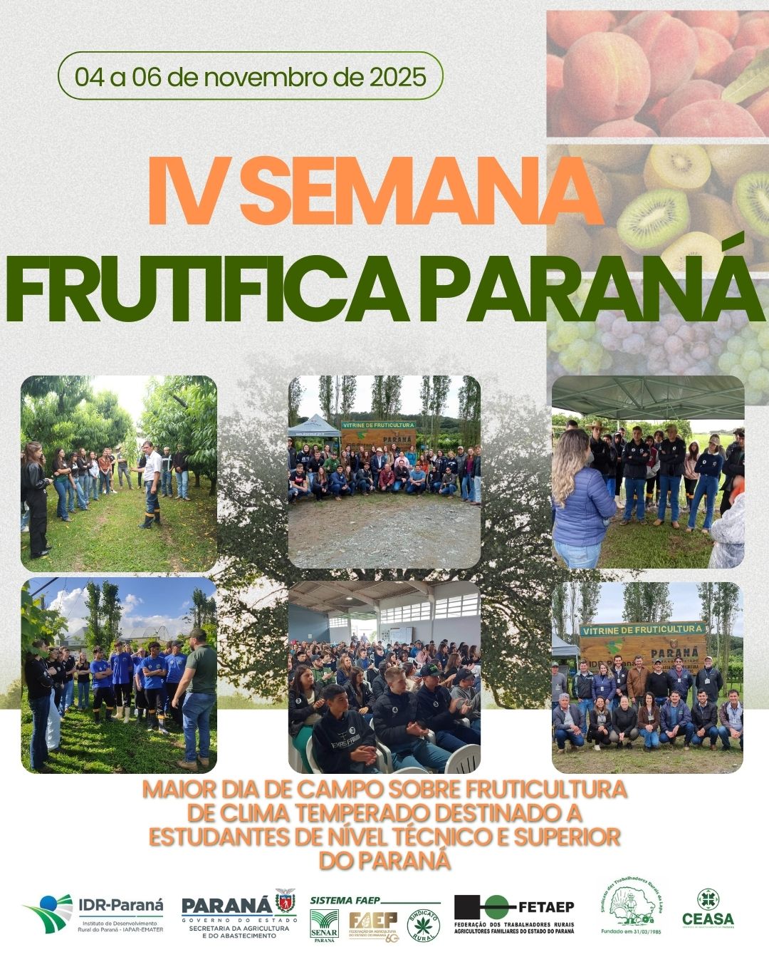| III Semana Frutifica Paraná - Lapa/PR (Destinado a Universidades e Colégios Agrícolas) | de 05/11/2024 a 07/11/2024 Fechado Para Novas Inscricoes | |